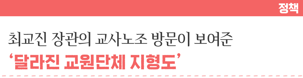 교육계 한 인사는 “최 장관이 전교조 출신으로 교육감 때부터 전교조 인사를 등용하는 등 관계가 깊다 보니 교총보다 전교조를 먼저 방문할 것이란 얘기도 있었지만, 가장 규모가 큰 교사노조인 교총을 존중해준 모양새”라고 설명했다.