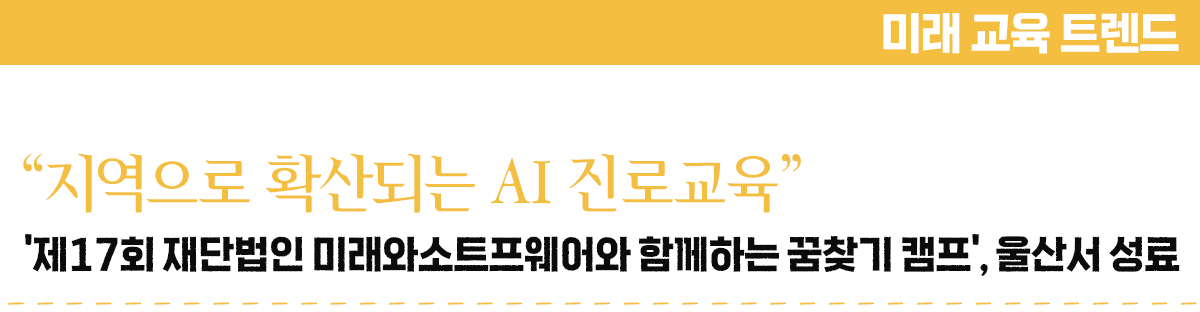 국내 대표 초·중등 진로 캠프인 '제17회 재단법인 미래와소프트웨어와 함께하는 꿈찾기 캠프'가 지난 8일에서 9일까지 울산 종하이노베이션센터에서 개최됐다.
