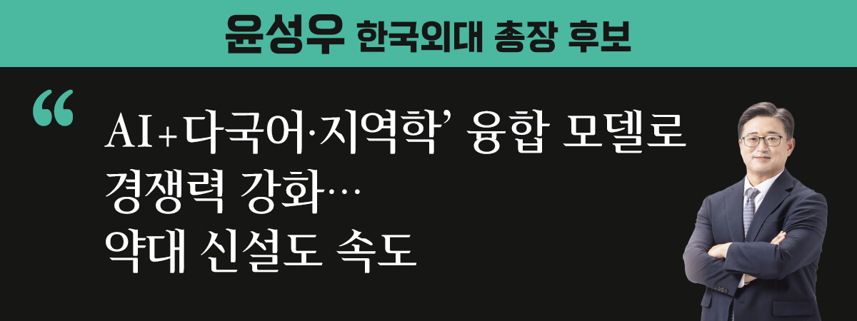 한국외국어대학교가 인공지능(AI) 전환과 2027년 3월 송도캠퍼스 개교라는 큰 변곡점과 마주했다. 다음 주 총장 선거를 앞둔 윤성우 한국외대 철학과 교수는 외대가 가진 다국어·지역학이라는 고유 자산을 AI 시대 경쟁력으로 확장하고, ‘약학대 신설’을 중심으로 송도캠퍼스를 바이오·국가전략 분야 거점으로 재편하는 청사진을 제시했다. 윤 교수의 구상과 전략을 들어봤다.
