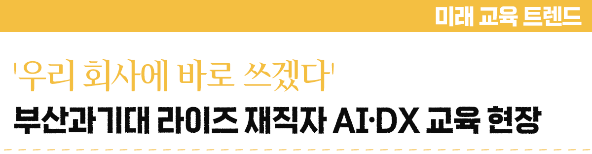 13일 부산과기대가 운영한 2025년 지역혁신중심 대학지원체계(RISE) 사업 일환으로 재직자 대상 'AI·DX 기초역량 향상 교육' 현장의 모습이다. 전형적인 강의실이 아닌 회사 업무 환경이 그대로 옮겨진 작은 실무 현장에 가까웠다.