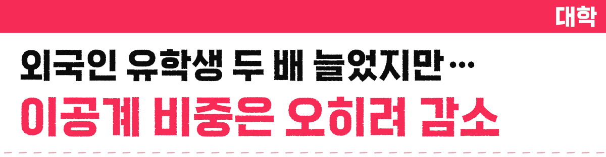 외국인 유학생 수가 빠르게 늘고 있지만, 이공계 분야 외국인 유학생 확대는 여전히 정체 상태에 머물고 있다. 10년 새 전체 외국인 유학생 규모는 두 배 이상 증가했으나 자연과학·공학 계열의 증가 속도는 이를 따라가지 못하며 유학생 정책의 '양적 확대'와 '질적 성과' 간 괴리가 뚜렷해지고 있다는 지적이 나온다.