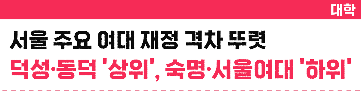 서울 주요 여자대학 간 재정 격차가 수익용 기본재산 지표에서 극명하게 드러났다. 덕성여대와 동덕여대가 법정 기준을 크게 웃도는 확보율을 기록했지만, 숙명여대와 서울여대는 확보율이 20%에도 못 미치며 최하위권에 머물렀다.