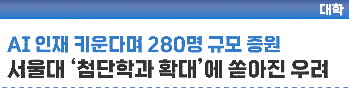 서울대에 따르면 이번 신청안은 국가 혁신과 성장을 이끄는 인공지능(AI) 및 첨단 신산업 분야 인재 양성에 대학이 선제적으로 대응해야 한다는 교육부 지침에 따른 입학정원 확대 조치의 일환이다.
