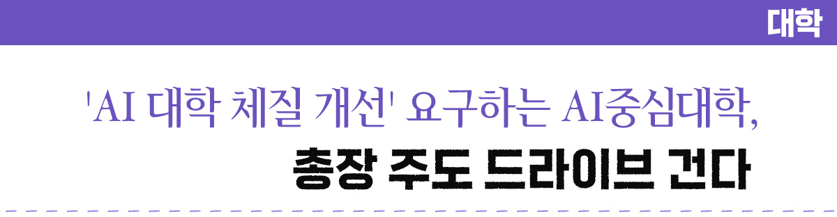 실제로 이달 발표된 AI중심대학 전환대학 평가항목 중 '대학 교육체계 개편'에는 총장 직속 별도 조직을 구축하도록 하는 항목이 새롭게 추가됐다. '대학자율 교육 혁신체계 개편'은 평가 배점 100점 중 15점(15%)을 차지하는 항목이다. SW중심대학에서 AI중심대학으로 전환하는 대학은 'AX 융합교육 총괄을 추진할 수 있는 총장 직속 별도 조직 구축 운영 계획 수립'을 세워야 한다.