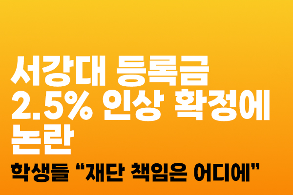 서강대학교가 2026학년도 등록금 2.5% 인상을 확정했지만 재단의 재정 기여는 여전히 미미한 수준에 머물러 등록금 부담만 학생들에게 전가되고 있다는 비판이 나온다. 서강대 총학생회는 최근 SNS를 통해 제3차 등록금심의위원회 회의 내용을 공유했다.