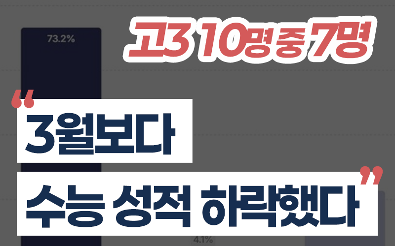 25일 진학사가 지난해 3월 학평과 실제 수능 성적을 모두 입력한 수험생 1만157명의 데이터를 분석한 결과, 국어·수학·탐구 평균 백분위 기준으로 성적이 하락한 학생이 전체의 73.2%에 달했다. 성적이 상승한 학생은 22.7%, 유지한 학생은 4.1%로 나타났다.