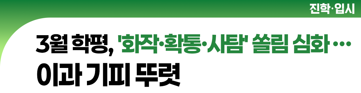 과탐 급감·사탐 쏠림에 2027 수능 변수 늘어난다 | 서울시교육청 주관 2027학년도 고3 3월 전국연합학력평가 결과를 분석한 자료에 따르면, 이과 수학(미적분·기하) 응시 비율은 25.8%, 과학탐구 응시 비율은 35.2%로 전년 대비 각각 큰 폭으로 감소했다.