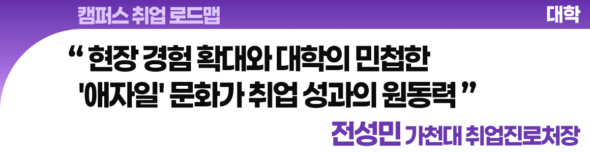 인공지능(AI)이 노동 시장의 재편을 가속화하는 시대, 대학들은 각자만의 방식으로 인재 양성에 몰두하며 급변하는 산업 현장에 대응한다. AI로 점점 까다로워지는 취업 시장에서 가파른 성장세를 보이는 가천대 전성민 취업진로처장은 매년 높아지는 입시 결과와 상위권을 유지하는 취업률에 대해 강한 자신감을 표했다.