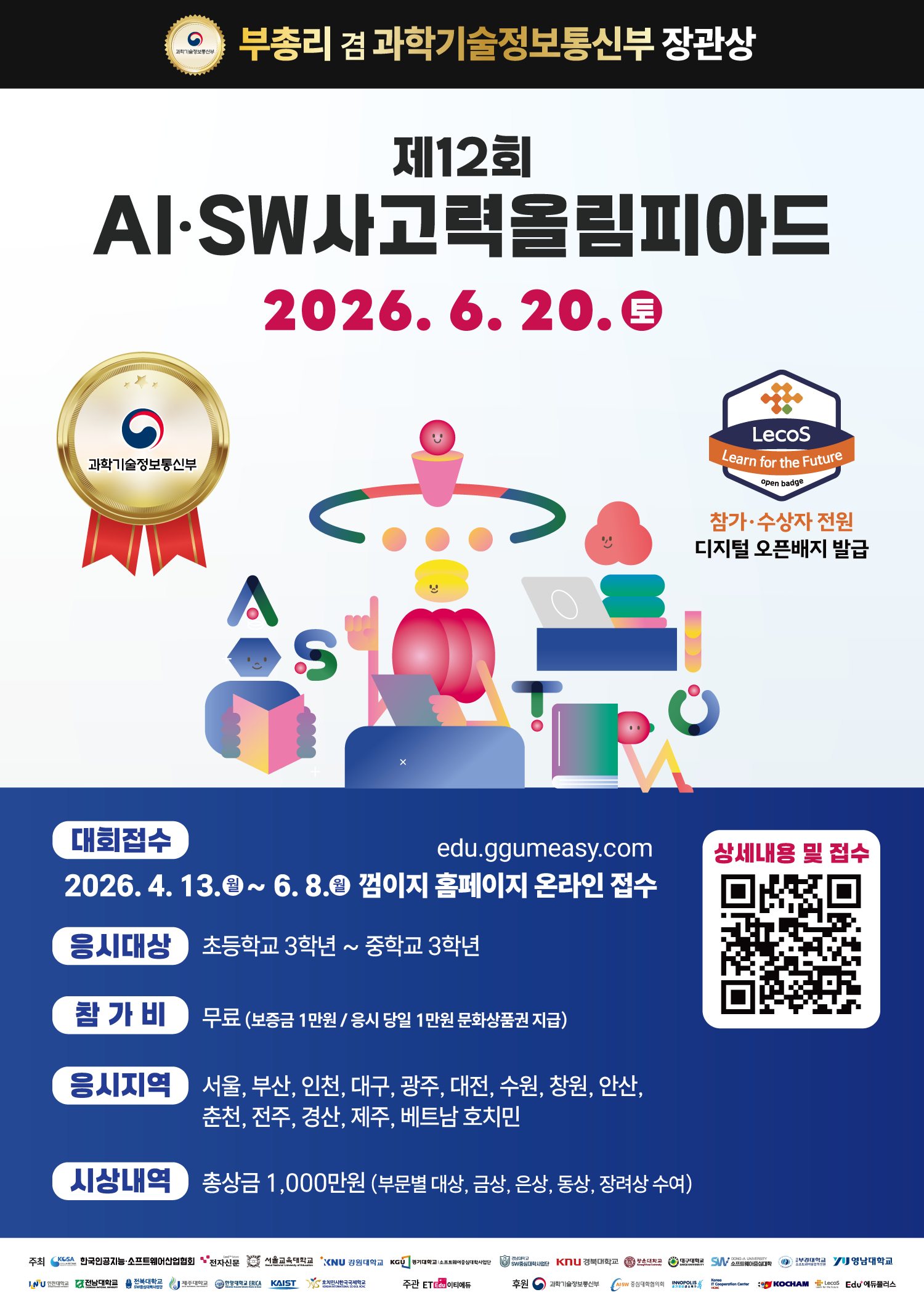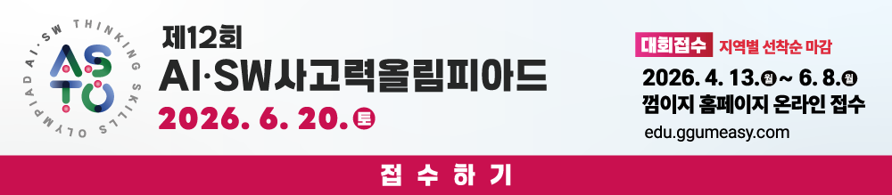 6월 20일 전국 14곳과 호치민서 동시 개최 벚꽃이 흩날릴 때쯤이면 에듀터붓도 소프트웨어사고력올림피아드 준비로 바빠지곤 했었는데요. 2026년 제12회 대회부터는 인공지능소프트웨어사고력올림피아드로 명칭이 변경되었답니다. 오늘부터 올림피아드 접수도 시작된다고 하니, 아래 준비한 기사를 꼼꼼하게 읽어주시면 좋을 것 같아요!